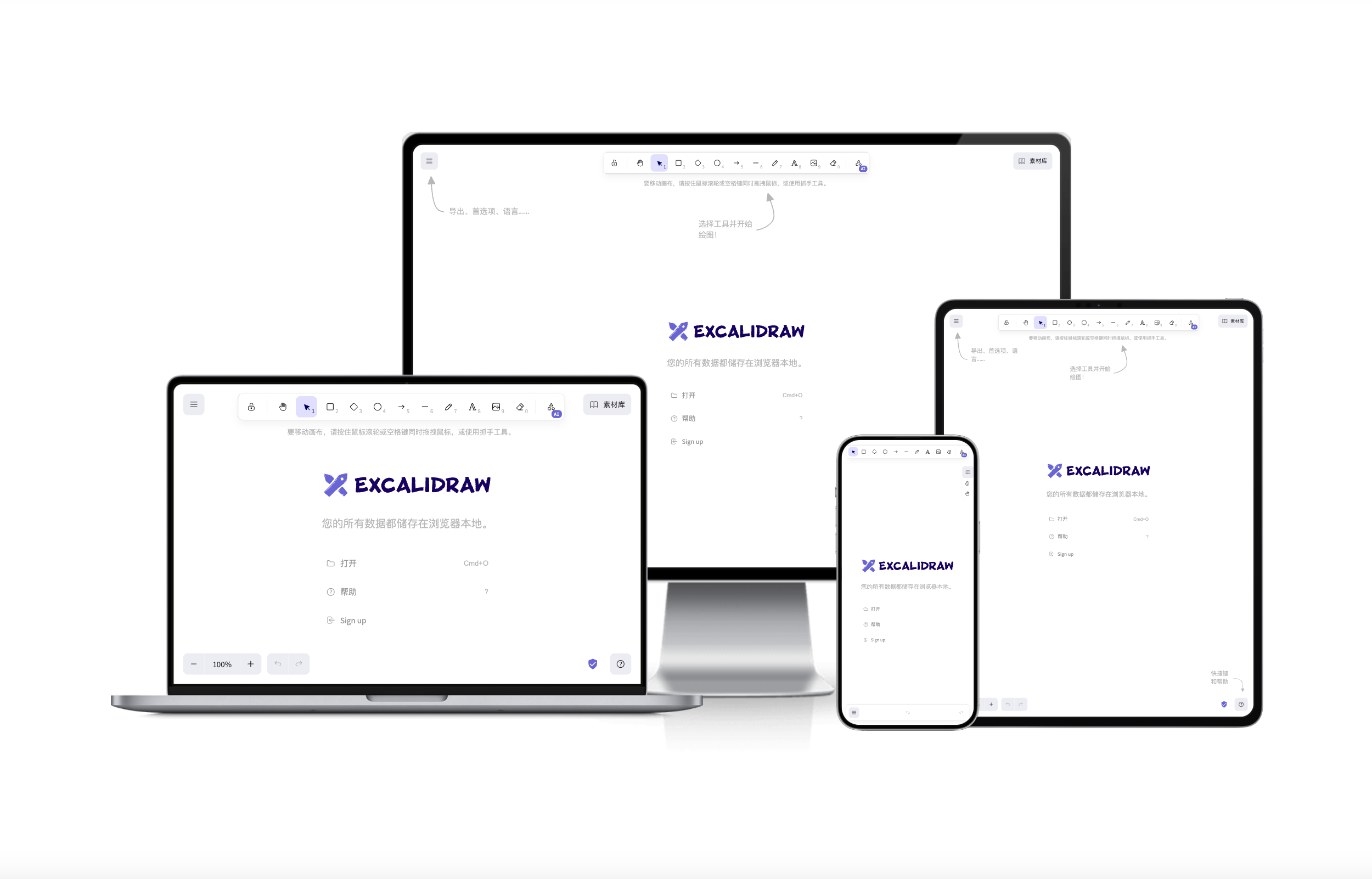 - 无限画布式白板多种工具、自由绘制你喜欢的任何东西